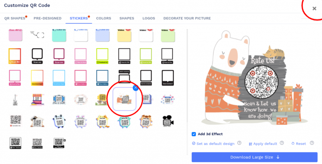Note: Click on the 'x' icon of the 'Customize QR Code' pop-up to save changes.
