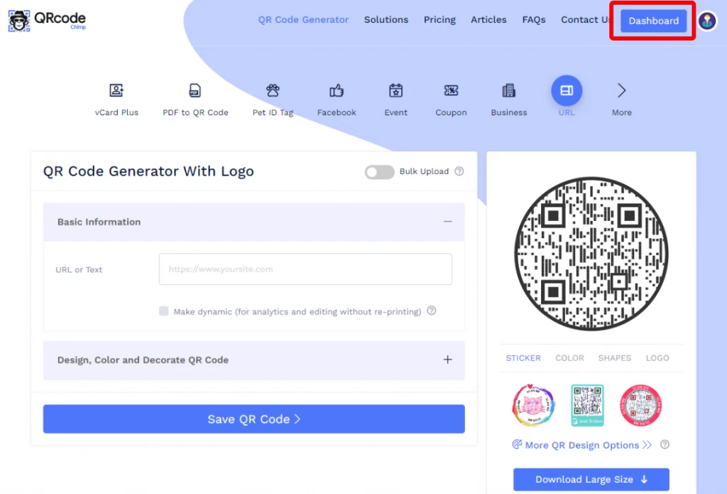 Sign in to your QRCodeChimp account and navigate to Dashboard.