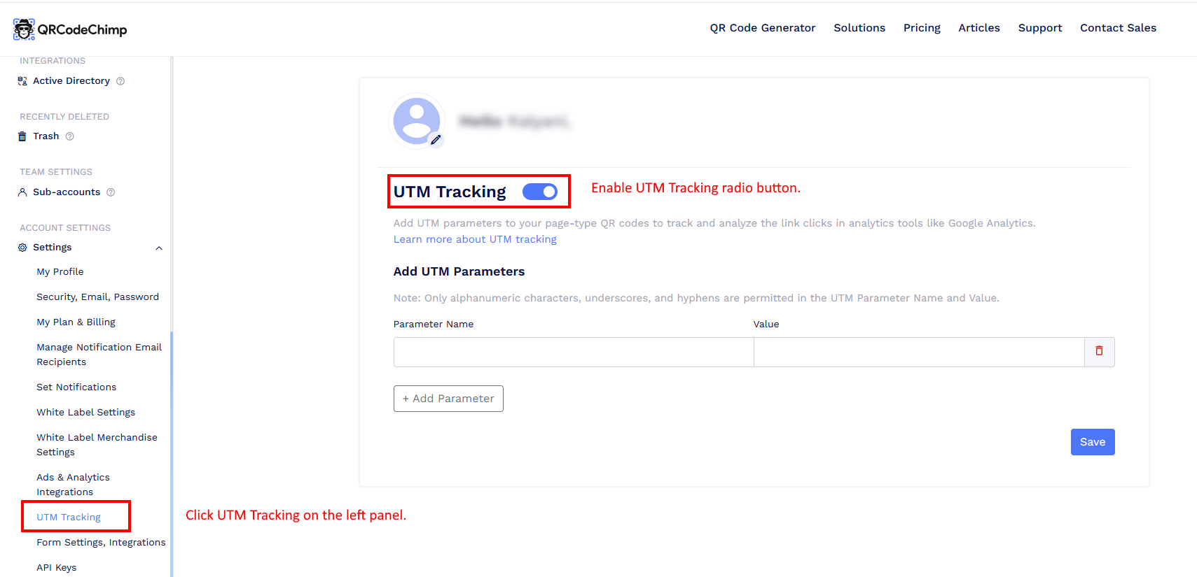 👉 Note: Once UTM tracking is enabled at the account level, it is turned ON by default for all new QR codes (that support UTM tracking) you create.