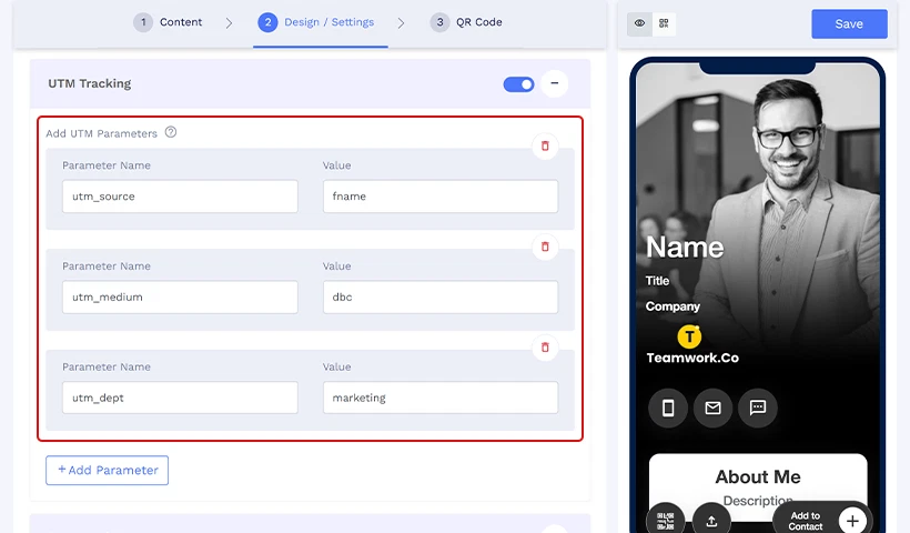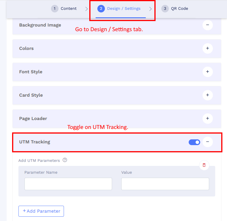 You can enable and customize UTM tracking directly on individual QR codes. Here’s how: