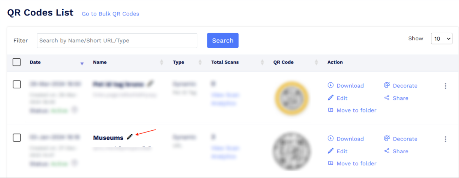 - Locate the QR code you want to rename.
