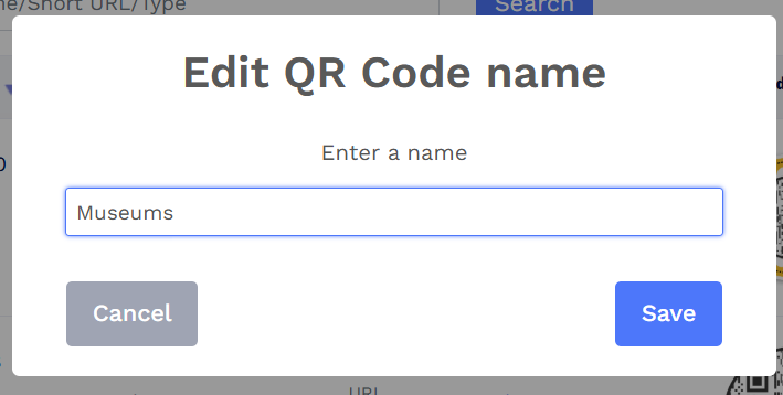 - A pop-up will appear to edit the QR code name.