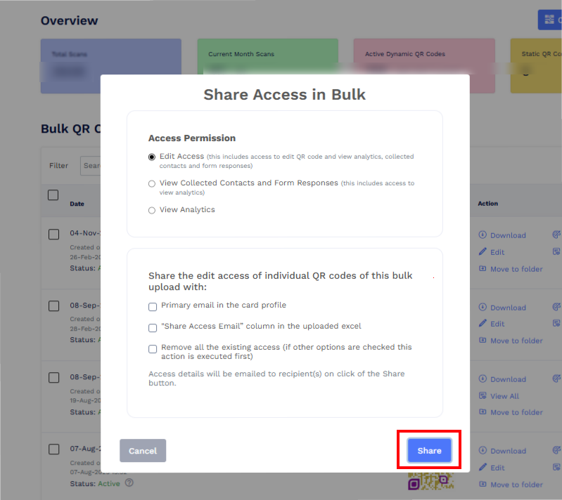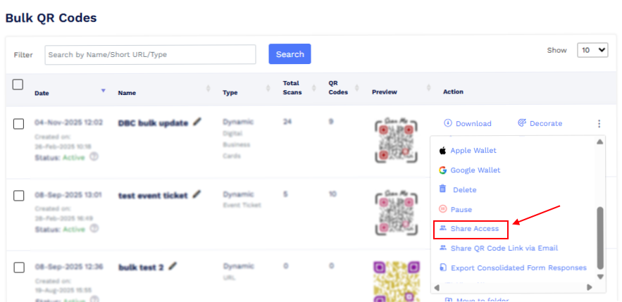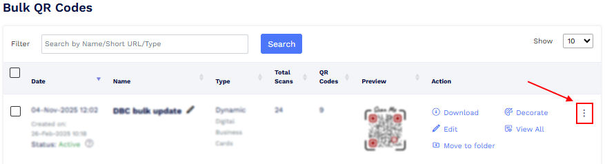 Go to your Dashboard and click on Bulk QR Codes from the left panel.