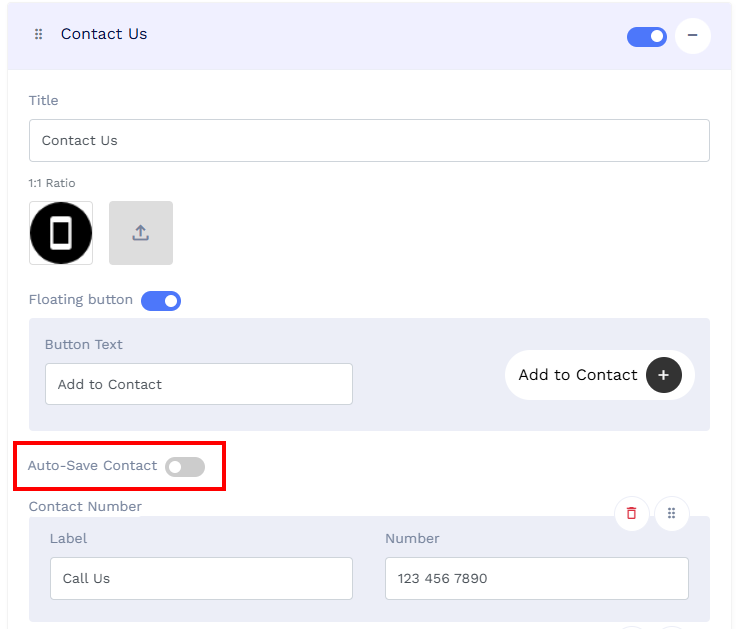 When this option is enabled, users do not need to tap or manually save the contact information. The contact details are downloaded automatically on page load, making it quicker and more convenient to save the contact.