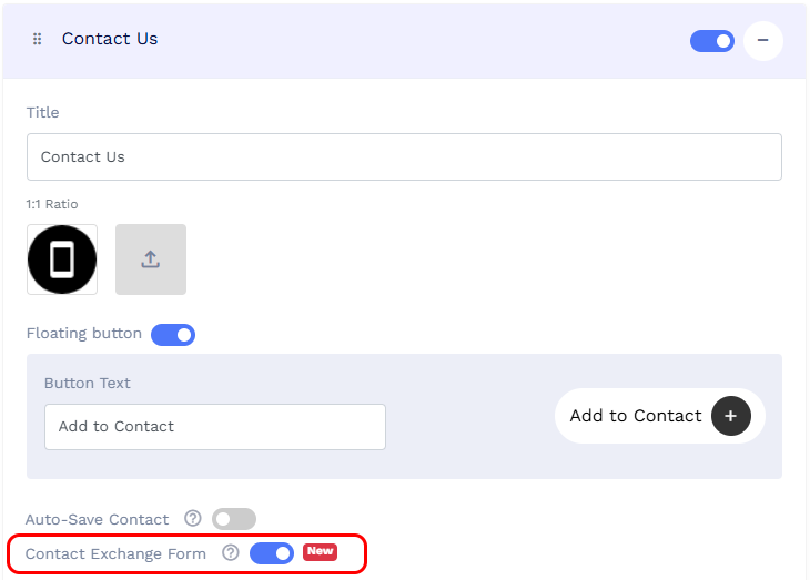 The Contact Exchange Form option lets people share their contact details with you when they save your contact from your digital business card.