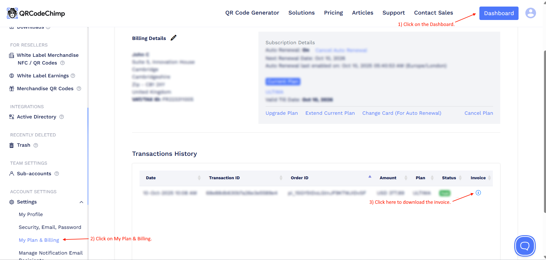 3) Click on the download icon in the Invoice column for the corresponding payment